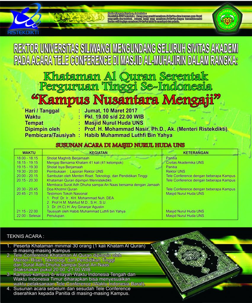 Rektor Universitas Siliwangi Mengundang Seluruh Sivitas Akademi Pada Acara Teleconference Di Masjid Al-Muhajirin Dalam Rangka: